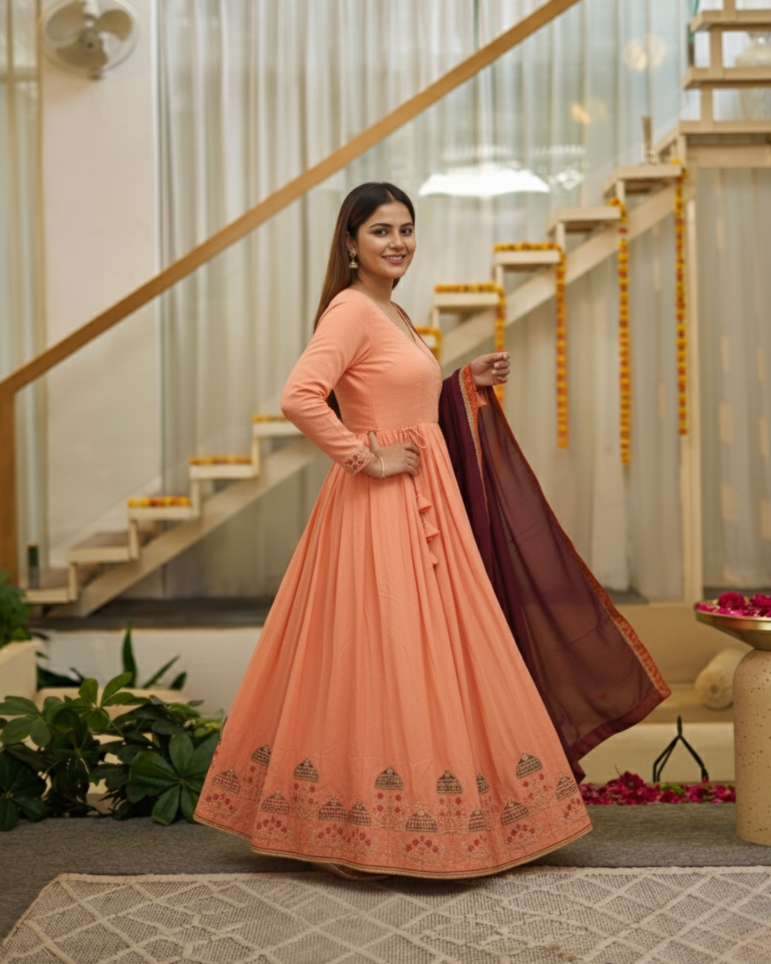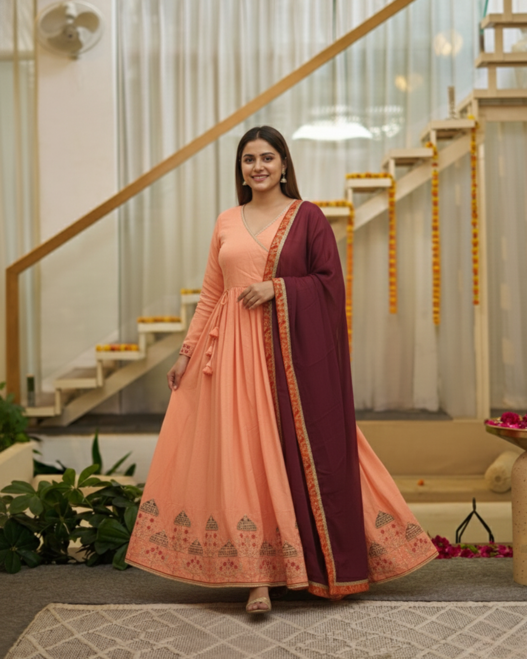 Angrakha Anarkali with Heavy Zari Embroidery & Moti WorkAngrakha Anarkali with Heavy Zari Embroidery & Moti Work