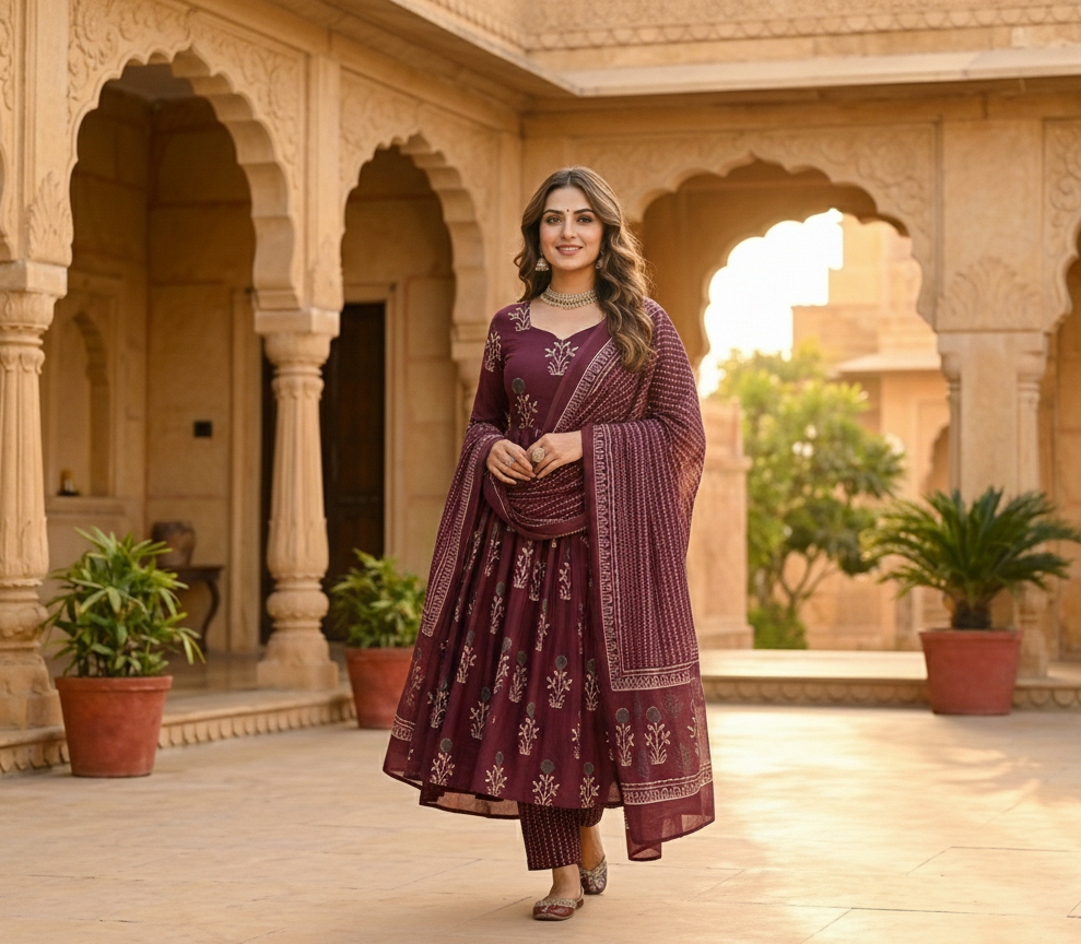 Beautiful Cotton Printed Anarkali Set for Women