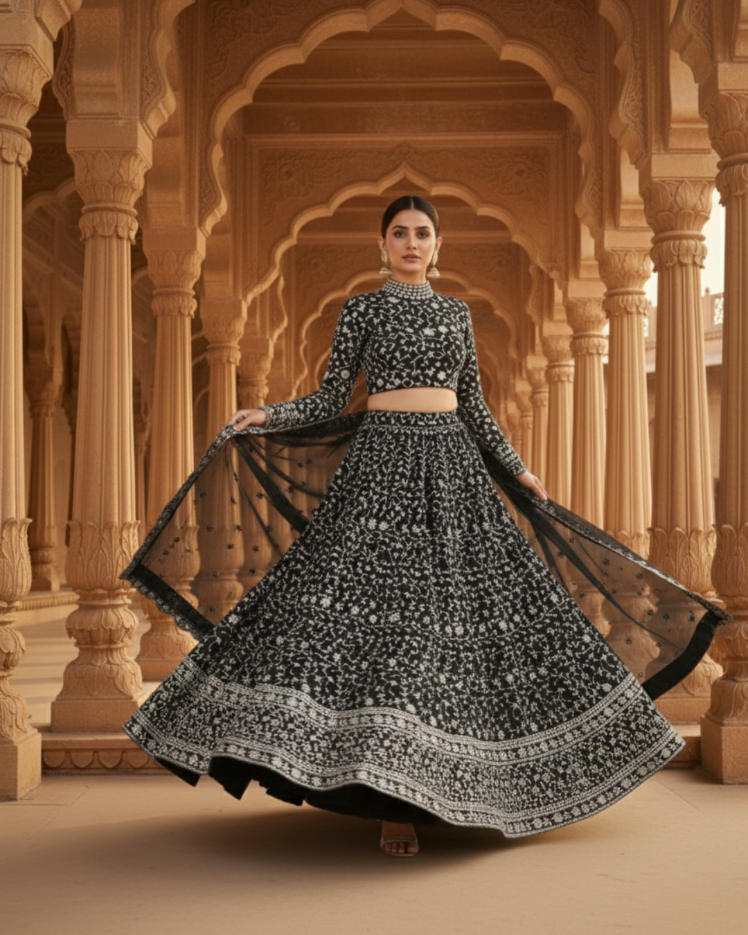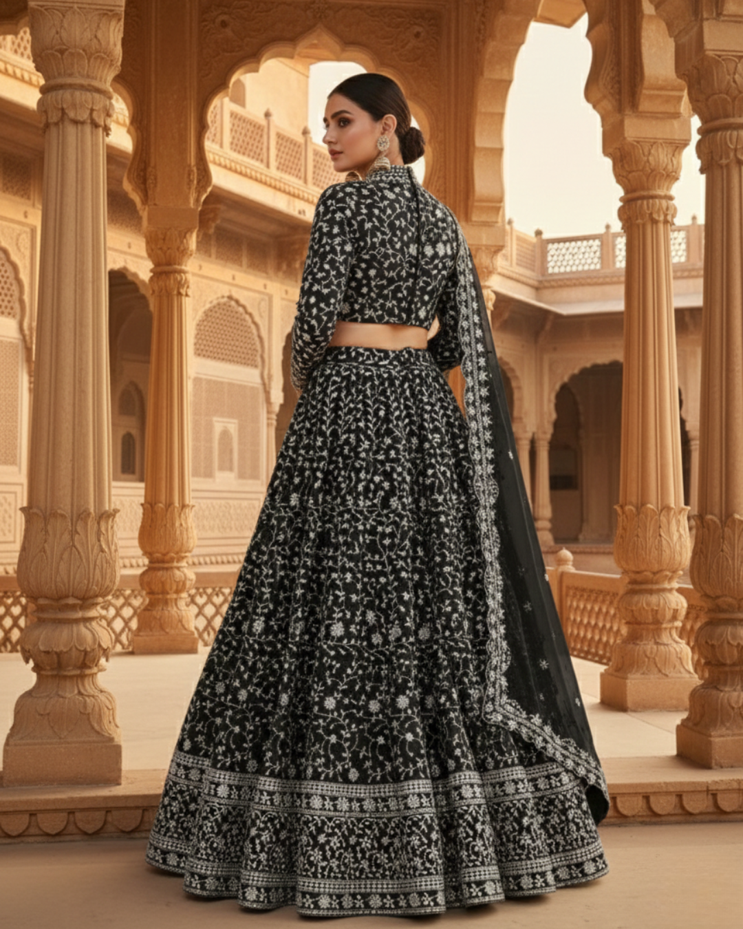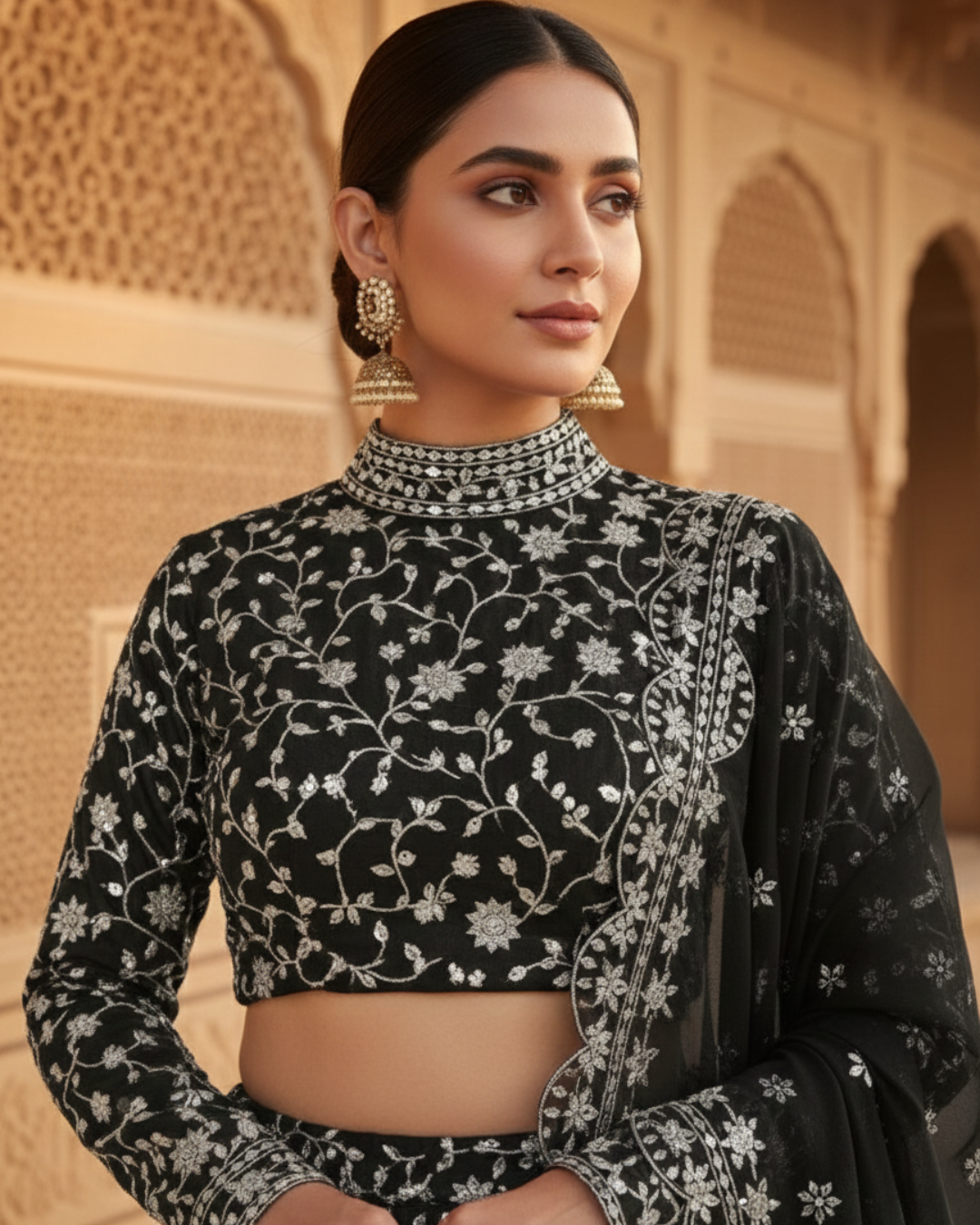 Black Sparkle Weave Lehenga Set with Sequins and Embroidery
