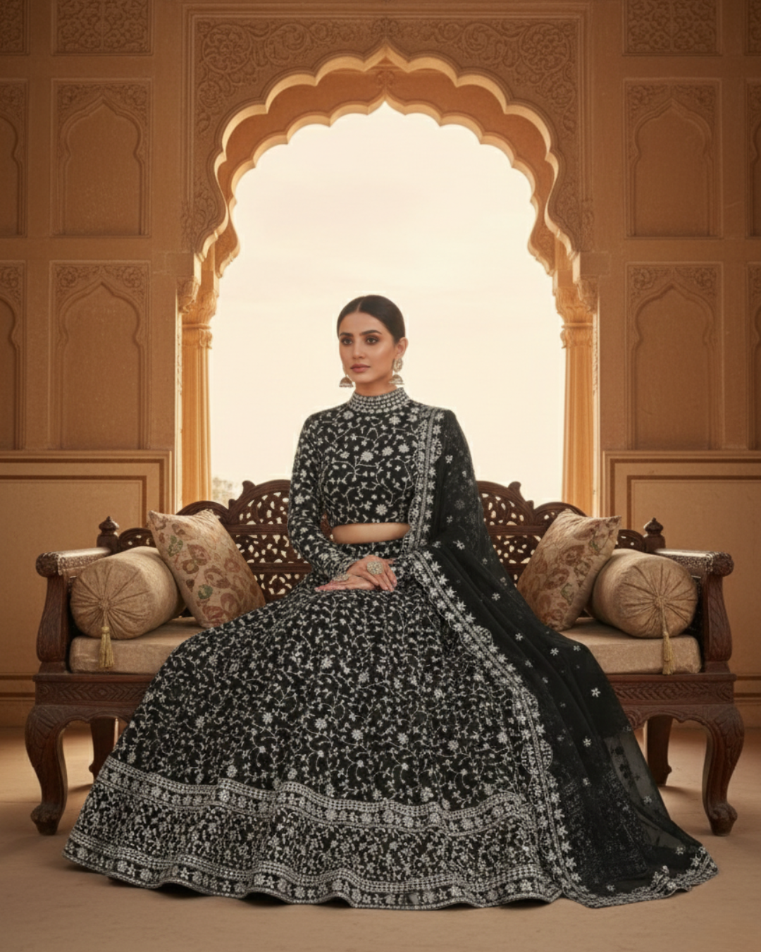 Be the first to review “Black Sparkle Weave Lehenga Set with Sequins and Embroidery”