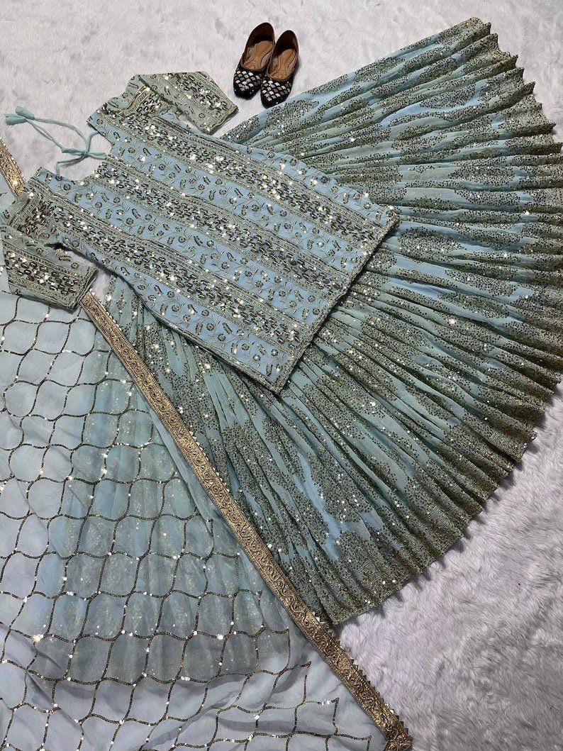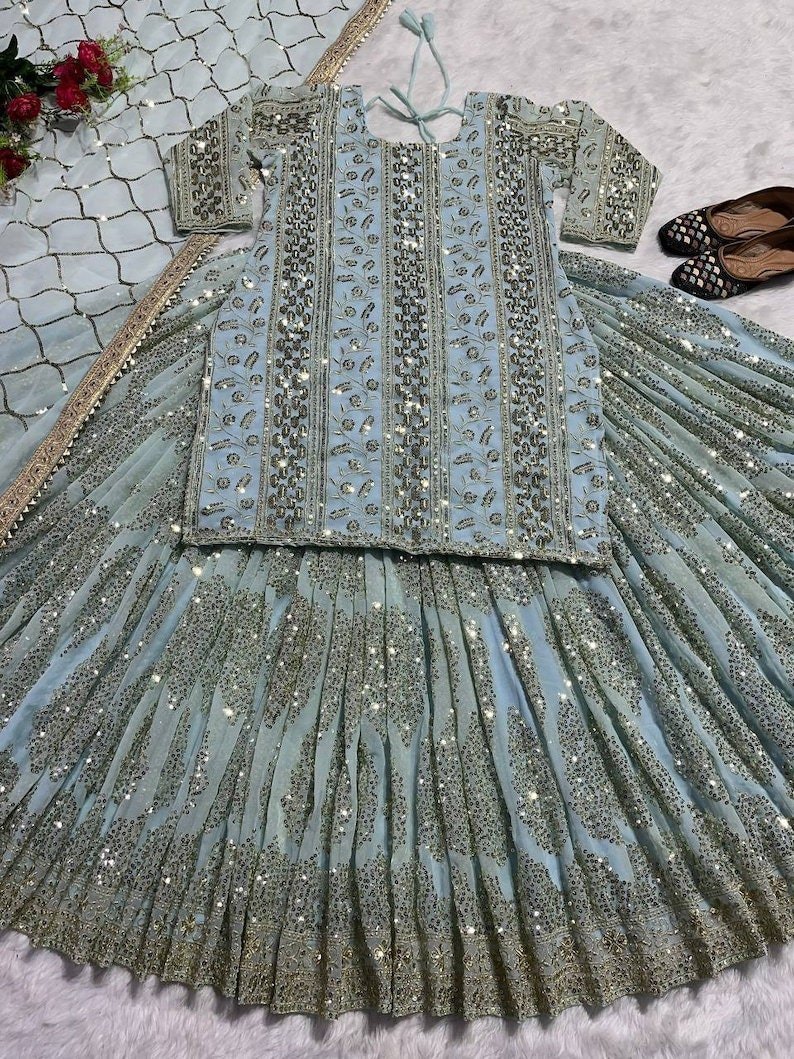 - Fabric: Georgette With 5mm Sequence Fancy Border Work
