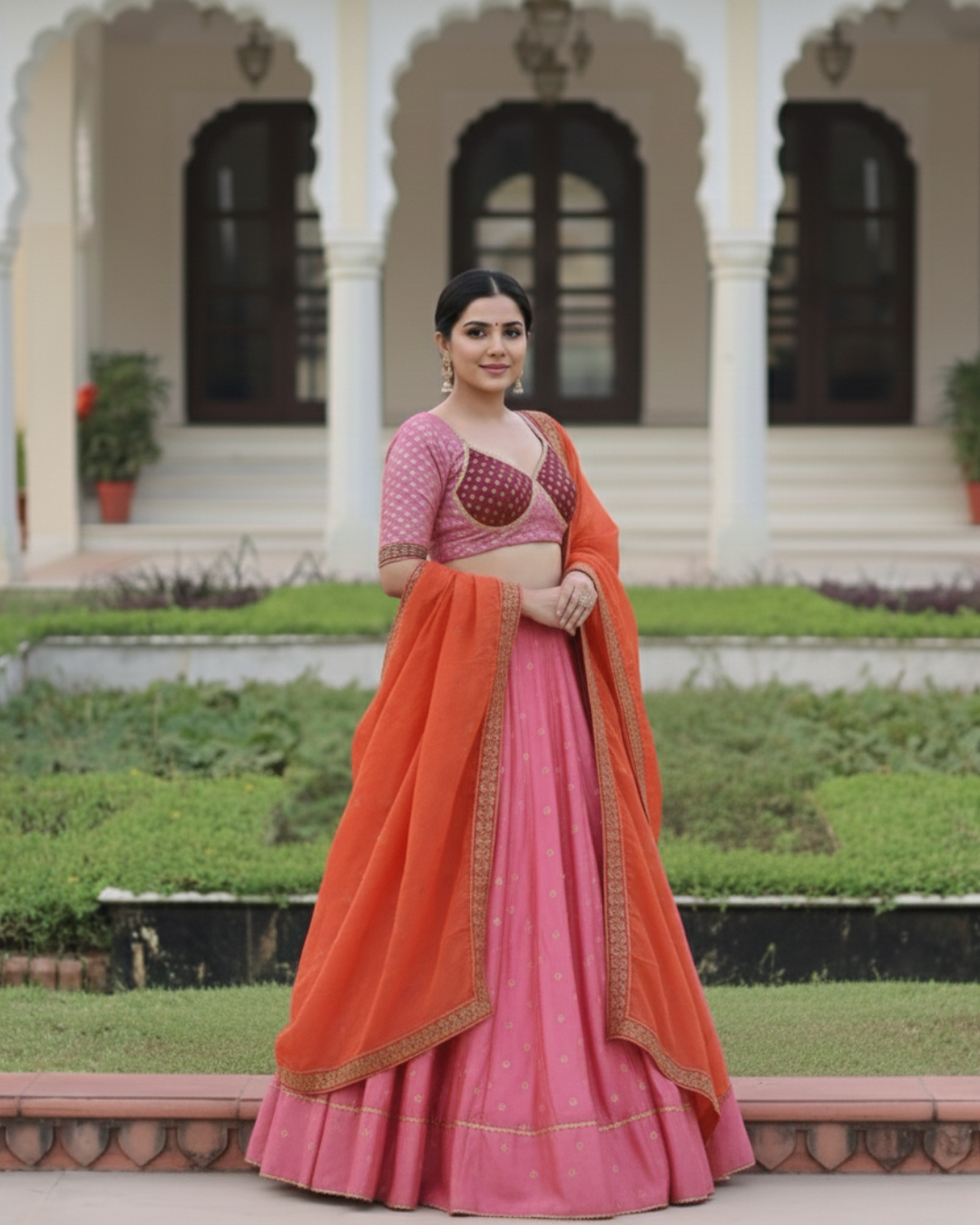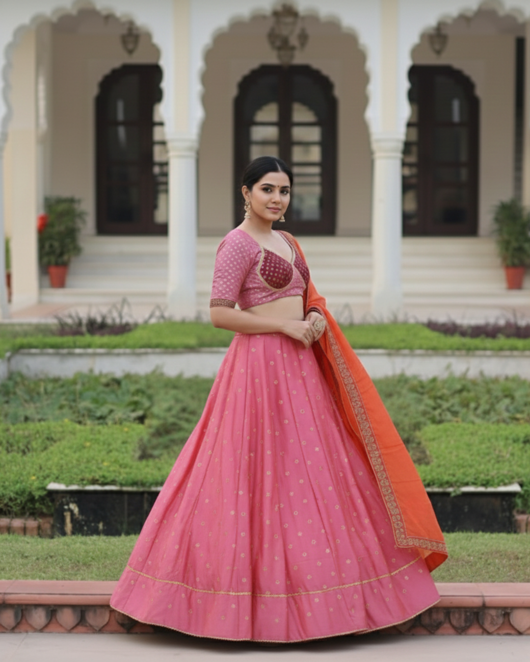 Be the first to review “Trendy Madhubala Blouse & Lehenga Set with Lace Border Dupatta”